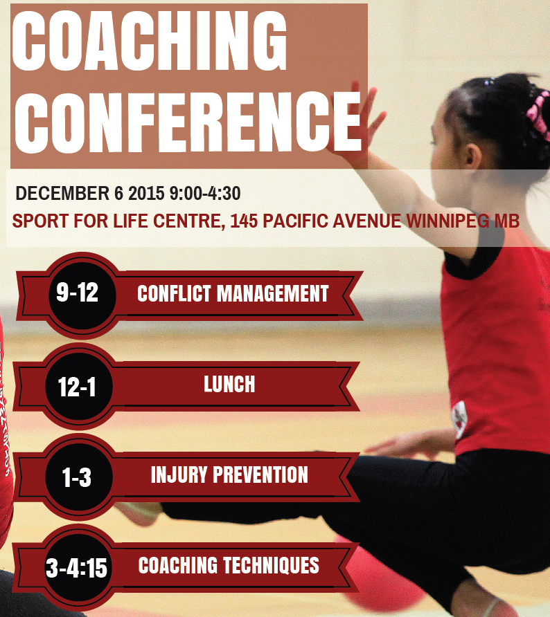 The 2015 Rhythmic Gymnastics Manitoba Coaches Conference will be held Sunday December 6th at the Sport for Life Centre in Winnipeg, Manitoba. Please click here to get the registration form.